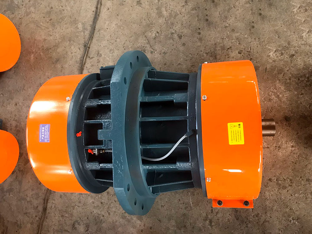 PJFL系列侧板式三相异步振动电机是我公司开发的新产品,与普通振动电机相比,它省去了振动电机复杂的电机底板结构,电机直接安装在振动机械的侧板上,可使振动机械实现圆运动或直线运动,同时可使振动机械重量减轻,机体刚度要求减少,减少振动机械的能耗,安装维护方便、单机激振力大、寿命长。它广泛应用于电力、建材、煤炭、化工、矿山、冶金、轻工、铸造等行业,主要适用于大型筛分设备。由于其独特的优点,可逐步替代轴偏心、块偏心等其它类型的激振源,同时为我国大型振动机械提供了新型、可靠的激振源。